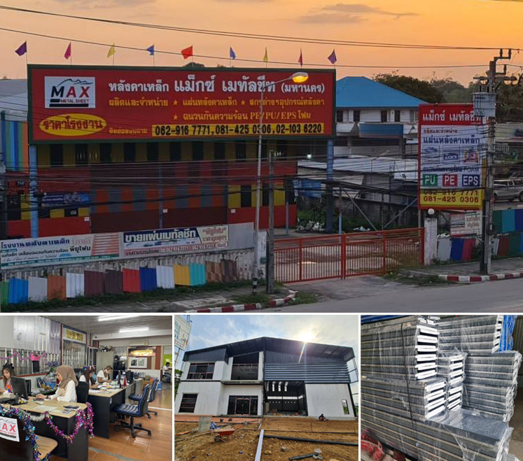 บริษัท แม็กซ์ เมทัลชีท จำกัด เราคือโรงงานผู้ผลิตแผ่นหลังคาอลูซิงค์(เมทัลชีท)ที่มีเครื่องจักรที่ทันสมัย และทีมงานที่มีความเชี่ยวชาญในการผลิต จำหน่ายแผ่นหลังคาที่มีคุณาพ ราคายุติธรรม พร้อมการบริการที่รวดเร็ว